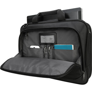 Información de Marketing  El Targus CityLite Briefcase ayuda a proteger las computadoras portátiles con pantallas de hasta 15.6 ”. Perfecto para el viajero ávido que busca una funda funcional pero liviana en un diseño moderno, la funda CityLite proporciona un compartimento frontal de fácil acceso para bolígrafos, un teléfono inteligente y otros accesorios. Una sección de archivo expandible almacena de forma segura los documentos. Proporcionando comodidad y conveniencia para viajar, este estuche cuenta con una correa para equipaje para facilitar el transporte en equipaje rodante, asas de transporte acolchadas y una correa para el hombro extraíble ajustable.