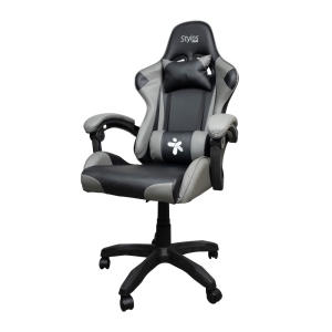 SILLA STYLOS GAMER NEGRO/GRIS/P VC/AJUSTABLE/ACERO/145GRADOS/ R115K